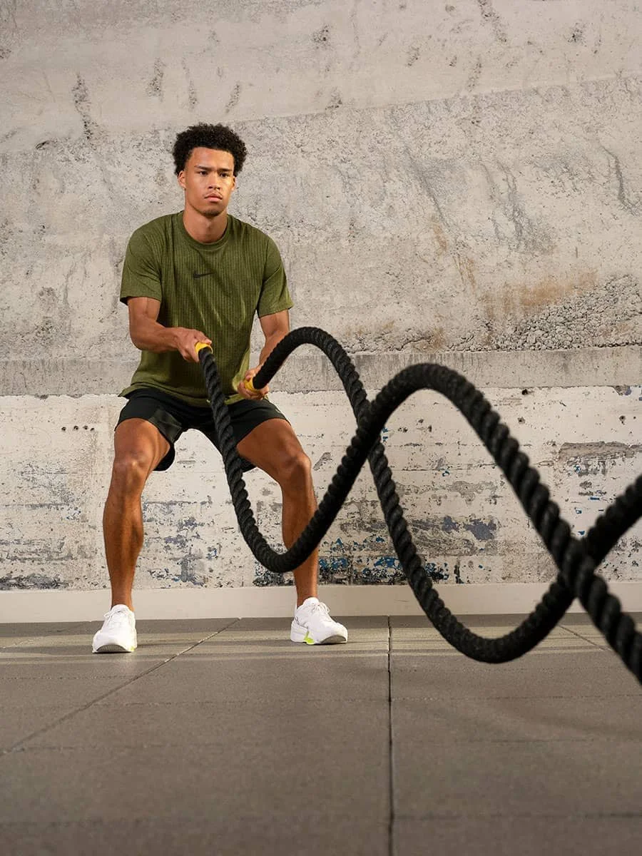You can incorporate various tools for the final part of your workout such as a treadmill, airbike, battle rope, sled push or pull, versaclimber, ski erg, and row machine. However, we will use short intervals combining high intensity with rest.